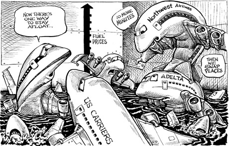 این روزها هوانوردی بازرگانی درگیربحران دیگریست. افزایش بهای نفت باعث شده است تا هزینه فعالیت شرکتهای هواپیمایی افزایش یابد و بسیاری از آنها که پس از چند سال زیاندهی در حال تجربه اولین سالهای سودآوری بودند زیانده گردند. شرکتهای دلتا و نورث وست در حال ادغام هستند شرکت یونایتد در حال تعدیل نیروست و بسیاری شرکتهای دیگر برای اعلام ورشکستگی آماده می شوند.