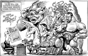 وقتی شانزده کشور اتحادیه اروپا واحد پول مشترک یورو را پذیرفتند، این ابزار را از دست دادند. اگر یونان بخواهد واحد پولش را کاهش دهد، این واحد پول در پانزده کشور دیگر هم مورد استفاده است و بر اقتصادهای ایشان تاثیر می گذارد. در نتیجه پانزده کشور یا باید تاثیر منفی کسری بودجه یونان بر یورو و اقتصاد اروپا را بپذیرند و یا به کمک او بشتابند تا از اثرات منفی این کسری بودجه بر یورو بکاهند. این کشورها تصمیم گرفته اند که به کمک یونان بروند. اما این کمک ارزان نیست.