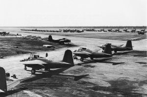 عکس : هواپیماهای آمریکایی در فرودگاه آبادان آماده تحویل به خلبانان روسی، منبع: ویکیپیدیا.