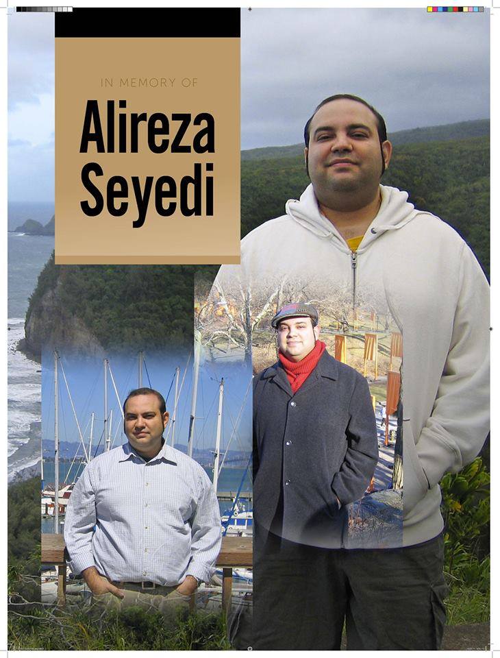 درگذشت ناگهانی او همه را بهت زده کرد و دوستان نزدیکش را عزادار. ولی افرادی مانند علیرضا با زندگی پربارشان راههای زیادی برای زیستن در ماورای بی نهایت دارند. با هدف زنده نگهداشتن یاد او و به منظور حمایت از پژوهشهای مشابه گروهی از دوستان علیرضا به همراه همسر دانشمندش یک بورسیه بعنوان جایزه برای فعالیتهای درخور پژوهشی در دانشگاه مرکزی فلوریدا Alireza Seyedi Doctoral Research Innovation Endowed Scholarship تاسیس کرده اند.